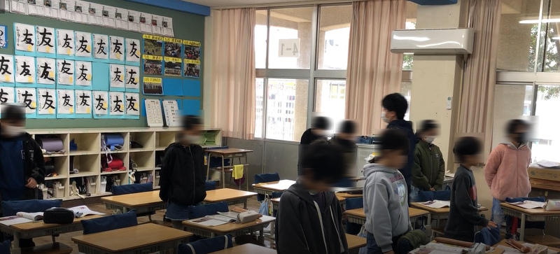 本日は授業スタートと同時に、いきなりブチかまします。「えっ?なんか、あった?」と児童に聞く校長。