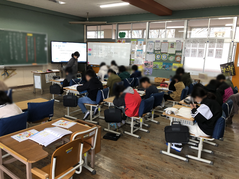授業の様子から、先週休んでいた子を集めて補充指導をしていたのでしょう。先週来ていた子は、総復習等各自で学習をしっかり進めていました。