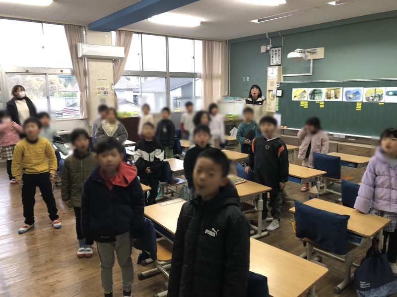 70年以上前から小学3・4年生の教科書に掲載されている有名な歌です。2部合唱をやっていました。K先生の「校長先生に聴いてもらおうか」の一声で、今回は、アルトパートを披露してくれました。節の重なりを楽しみながら、いかにつられないで歌えるかがポイントです。