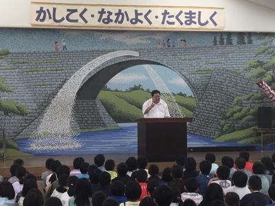 8月26日(月)、2学期がスタートしました。子どもたちはみんなよく日焼けをした顔で、元気に登校してきました。1時間目の始業式で、校長先生から「この1週間でしっかり学校のペースをつかんでいきましょう。」と話がありました。この1週間でしっかり生活ペースを整え、9月の運動会に向けて頑張ってほしいと思います。