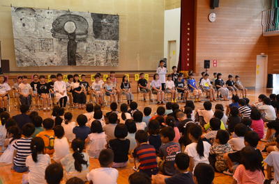 9月12日(木)、長崎県の銭座小学校6年生との交流会を行いました。銭座小学校の6年生と、矢部小学校の6年生がそれぞれ平和学習で学んできたことを発表し合い、みんなで感想を出し合っていきました。低学年にとっては少し難しい話もありましたが、それでも1年生から「命を大切にしないといけないと思いました。」という感想が出るなど、それぞれの6年生の思いがしっかりと伝わる交流会となりました。