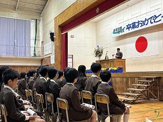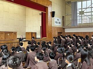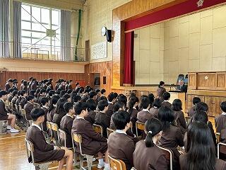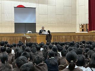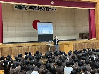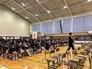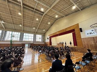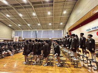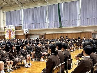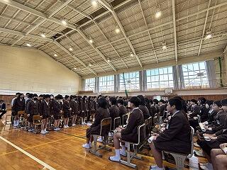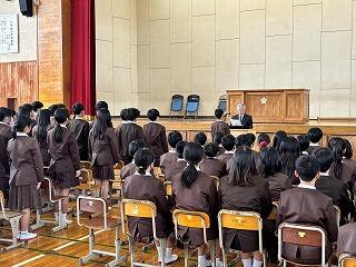 生徒指導担当からは、春休みについて「命を守る(交通安全、校区外へ子どもだけで行かない、インターネットの使い方)」「あたり前のことをあたり前にする(地域でのマナー)」についてのお話がありました。