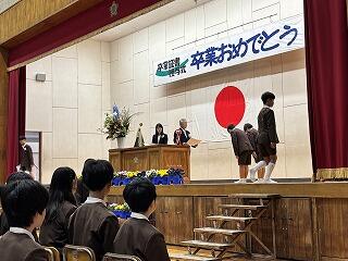 証書授与の様子です。何度も練習した成果が出て立派に受け渡しをしています。