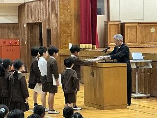 次にそれぞれの学年の代表が、修了証を校長先生から受け取りました。
