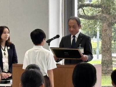 本日は表彰式が開かれました。本校からは科学展1名、発明工夫展2名が表彰を受けました。