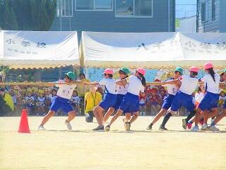 5,6年の綱引きは大きな声を出し、必死に綱を引きました。