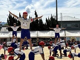 5,6年表現は息を合わせて組み体操をしました。素早く技を決めたときには観客席から驚きの声が聞かれました。