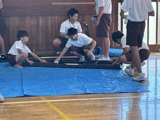 今日は運動会の片付けがありました。使用した長机やいすを丁寧に雑巾で拭いました。