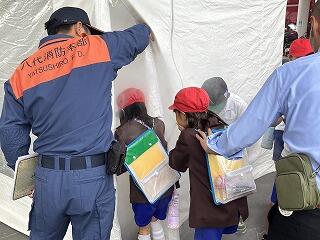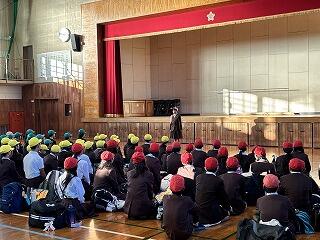 消防署の方から「おはしも(おさない・はしらない・しゃべらない・もどらない)」の大切さをお話しいただきました。