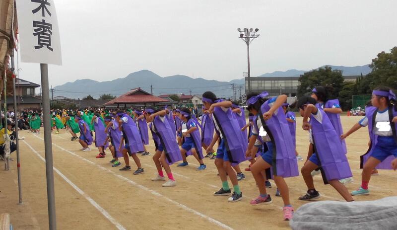 運動会本番では、3年生と4年生が一緒にソーラン節を披露します。