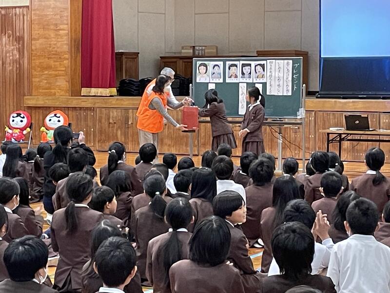 いただいた本は、全校児童で大切にして、たくさん読みたいと思います。