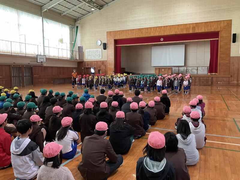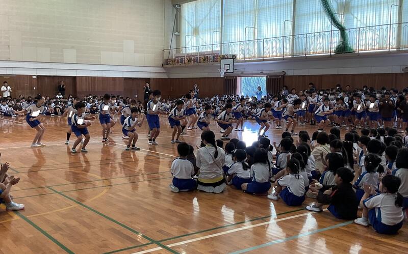 体育館では、3年生と4年生がソーラン節の踊りの練習をしました。
