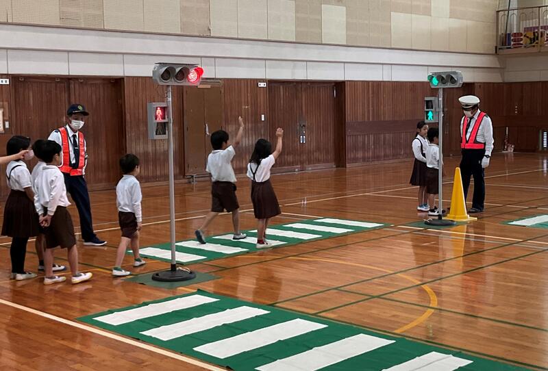 横断歩道では、先日の交通教室で学んだことを生かして横断歩道を渡っていました。