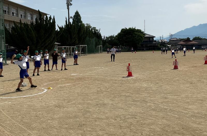 本日は、全学年運動場で50m走とソフトボール投げを行いました。
