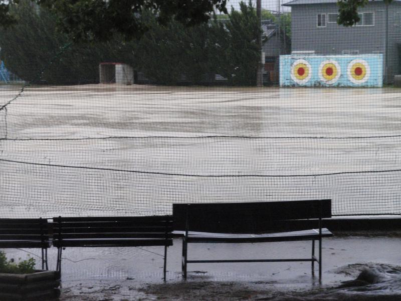 せっかくのお盆休みでしたが、雨ばかりでした。学校のグラウンドもかわく間もなしといったところでしょうか。