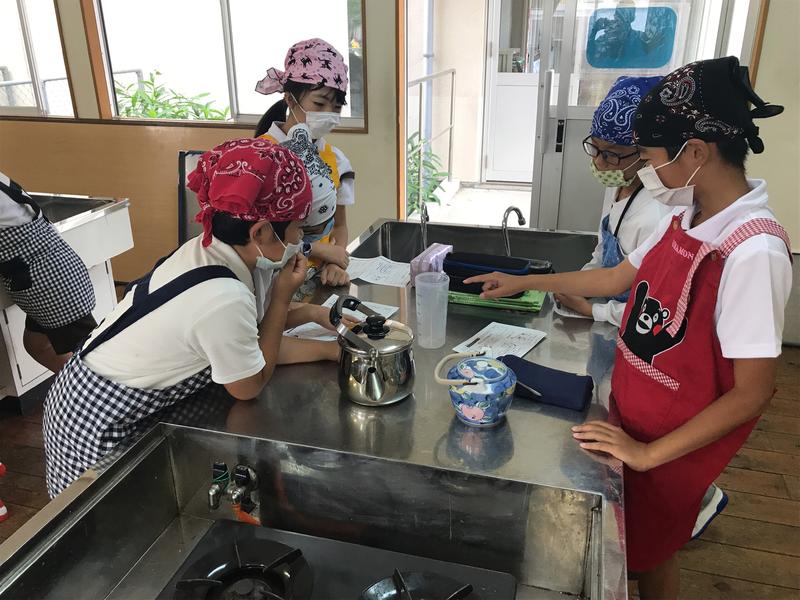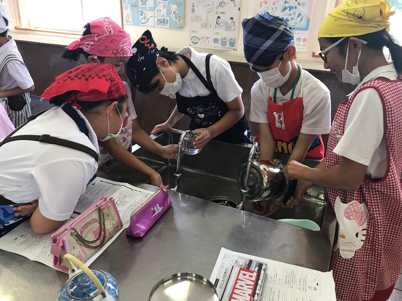 5年生の家庭科では、お湯を沸かし、お茶を入れました。