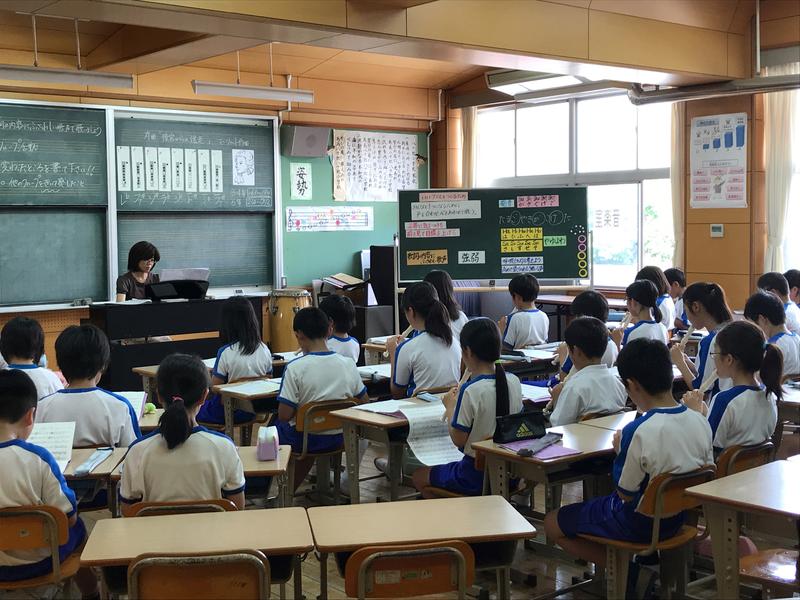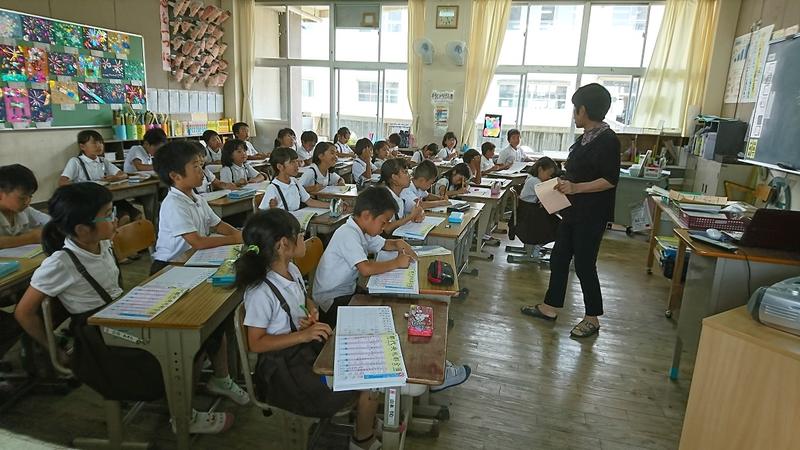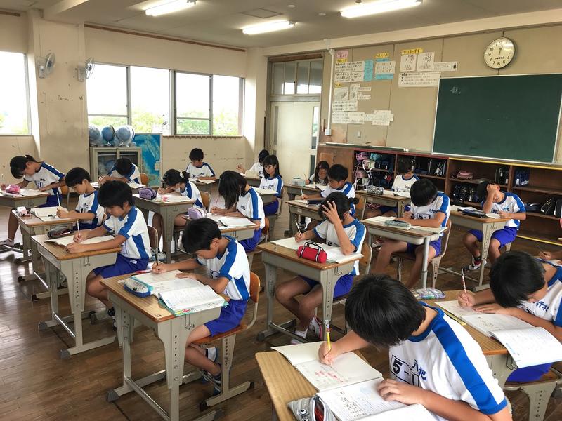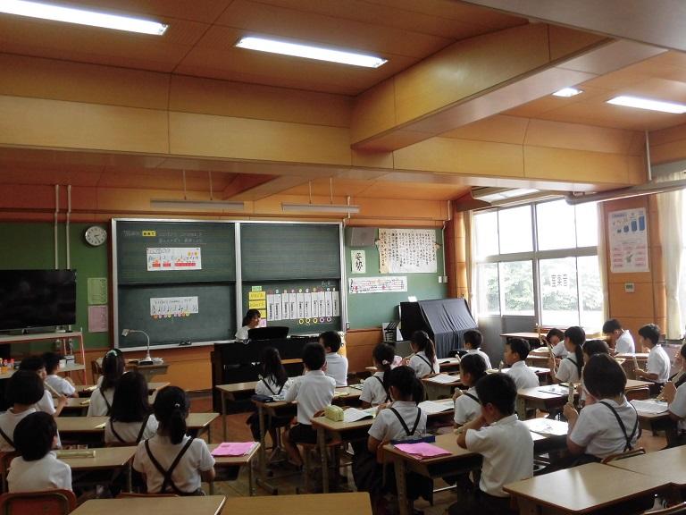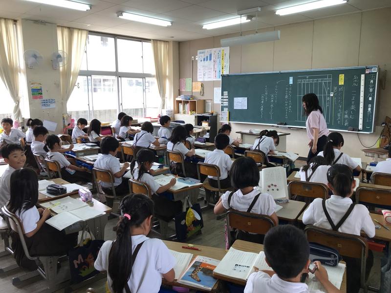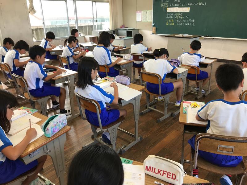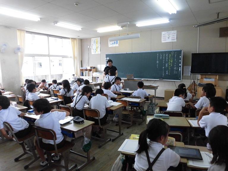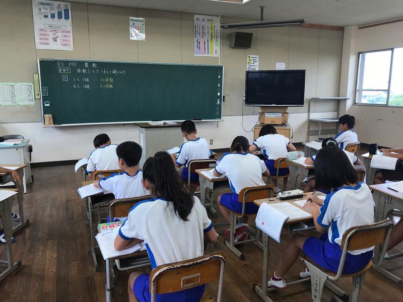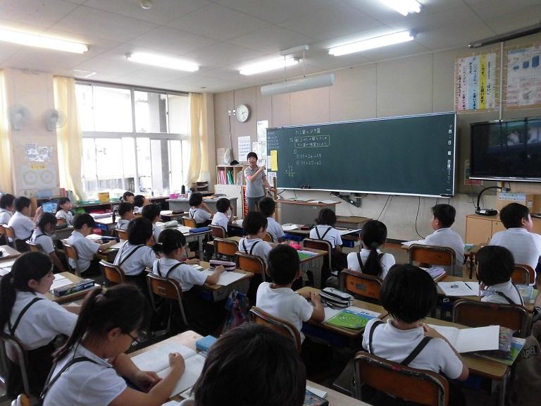 4年生の授業の様子です。担任の先生の話をしっかりと聞いて学習していました。