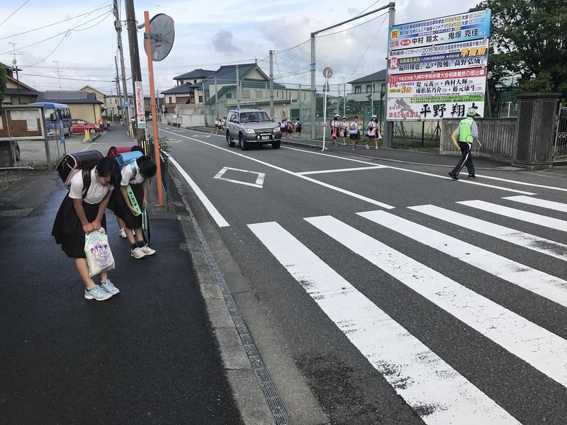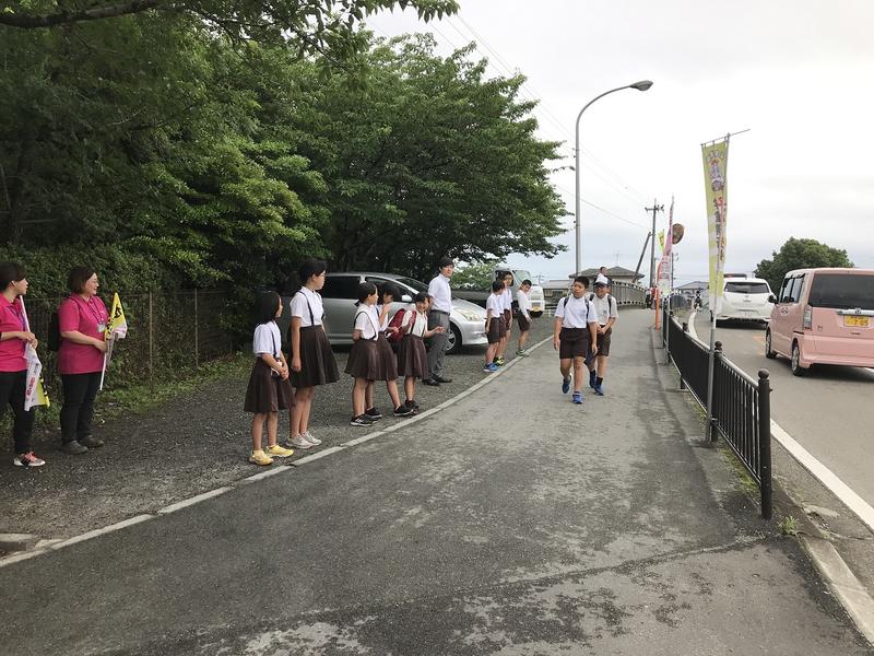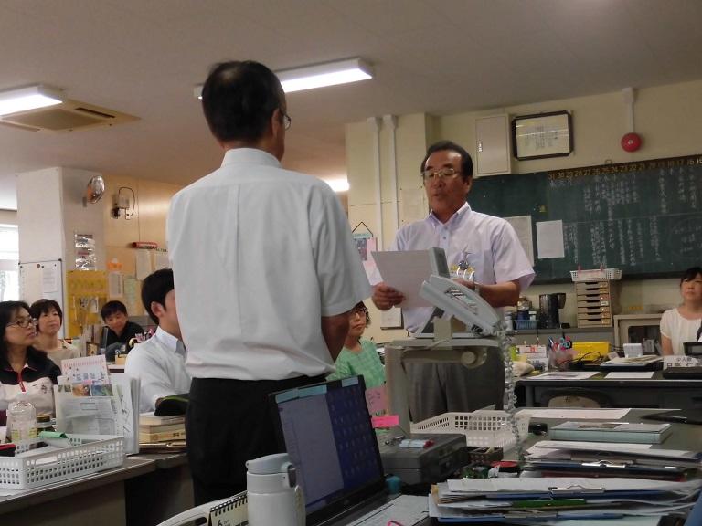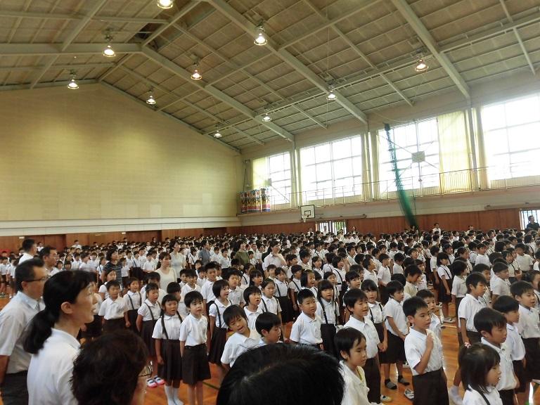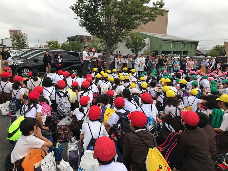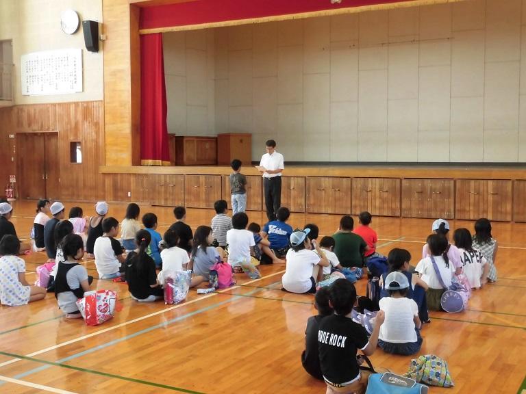校内の出発式で校長先生からお話がありました。子どもたちは真剣な表情で聞いてました。
