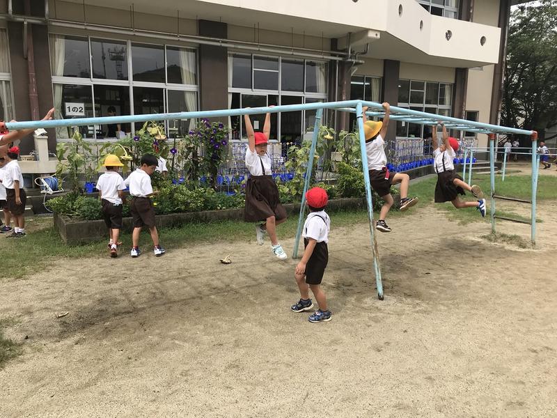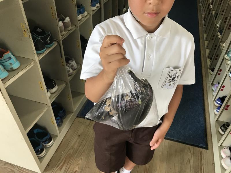 1年生が朝顔を育ててます。ずいぶん成長してきました。