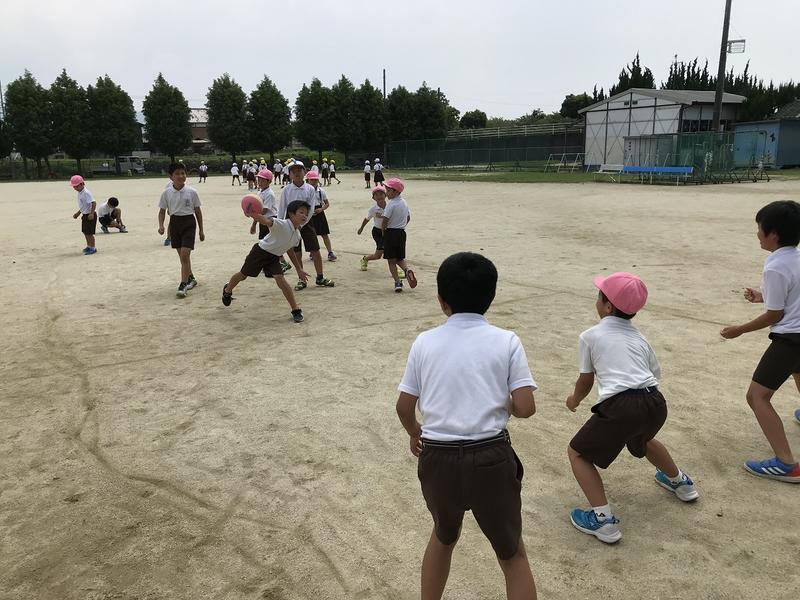 先日の雨天から一転し、本日は晴天に恵まれ、子どもたちにとって絶好の遊び日和です。昼休みの運動場や中庭は大賑わいでした。
