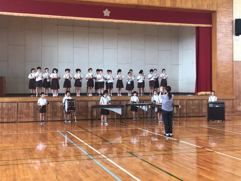 子どもたちが普段使う楽器(リコーダー・鍵盤ハーモニカ・大太鼓・シンバル・トライアングル)も演奏されました。音色の違いに驚く子どもたちでした。
