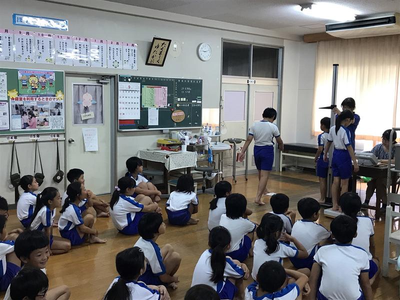 本日は「体力テスト」の日でした。体育館での測定種目に一生懸命取り組んでいる子どもたちの姿がありました。昨年度の記録を覚えている子からは「去年よりのびた。」と喜びの声が聞こえてきました。