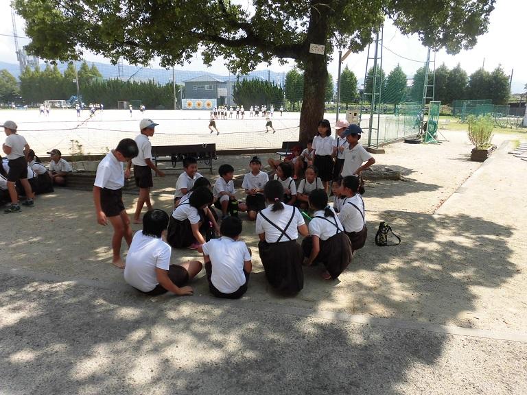 いよいよペーロン活動です。説明を真剣に聞く子どもたちです。