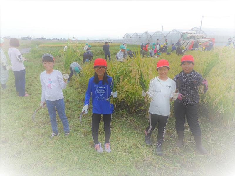 昨日は5年生の稲刈りでした。前田さんをはじめ、たくさんの方々のご協力のおかげで稲刈りの日を迎えることができました。初めて稲刈りをする子たちも多く、いい体験機会を与えていただきました。毎日食べるご飯が、様々な作業過程を経て食卓にあがること、知ることができたようでした。ありがとうございました。