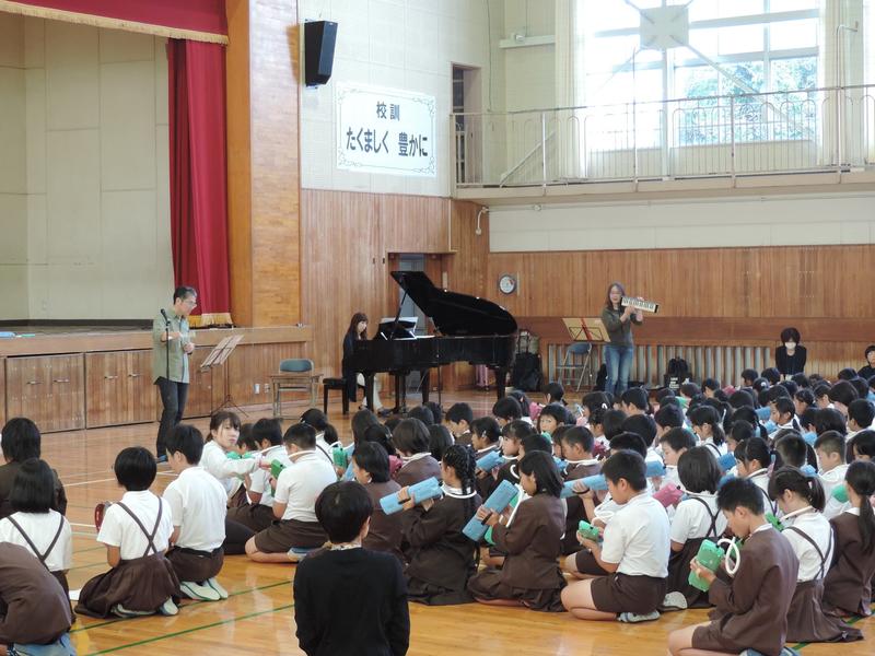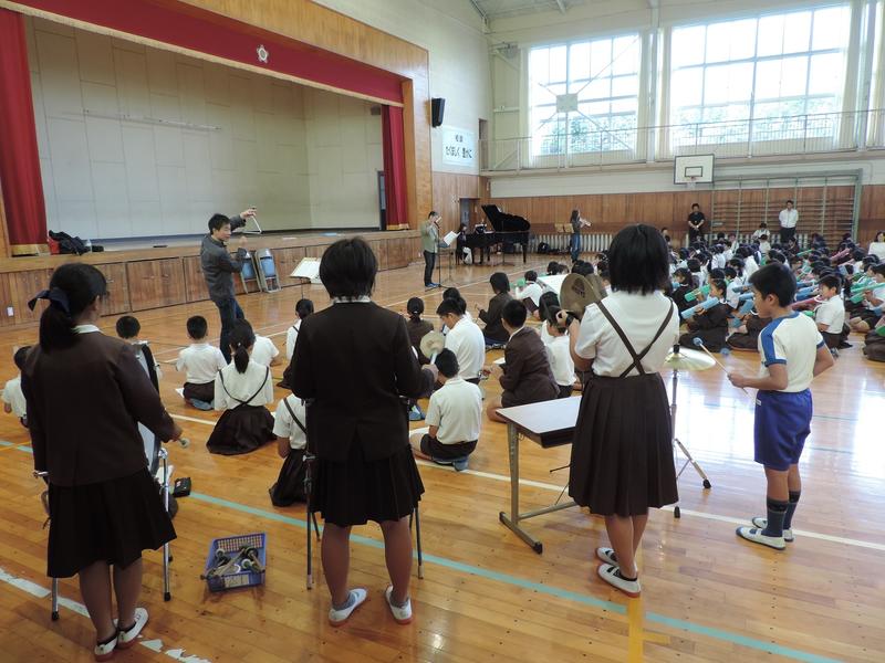 本日は京都フィルハーモニーの方々においでいただき、芸術鑑賞ワークショップを開催していただきました。11月20日(水)に「はじめてのクラッシックコンサート」として本校でコンサートを実施されます。そのコンサートの1つに子どもたちとの合同演奏会を予定していただいてます。ワークショップの様子を紹介します。