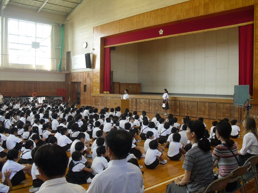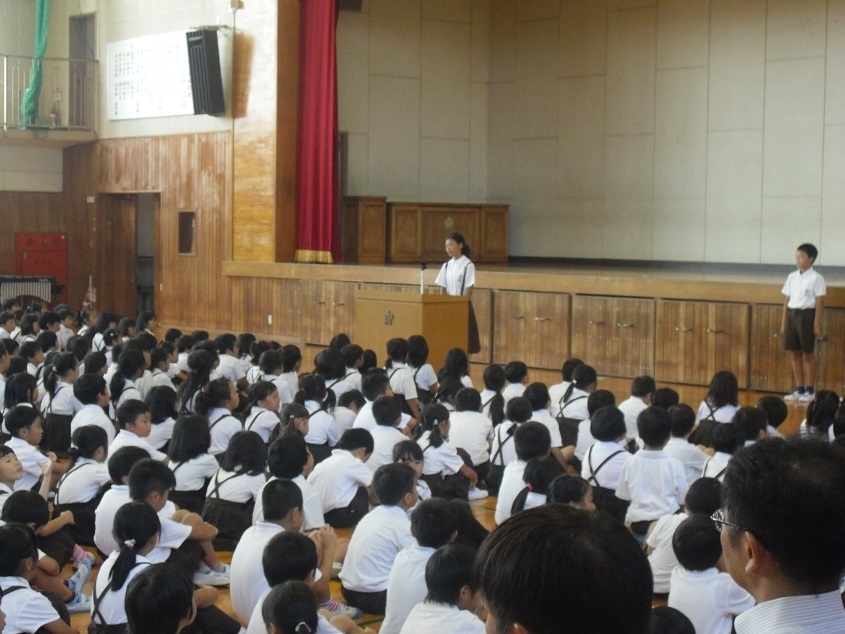 みんなで校歌を歌った後は、全体へのお知らせがありました。