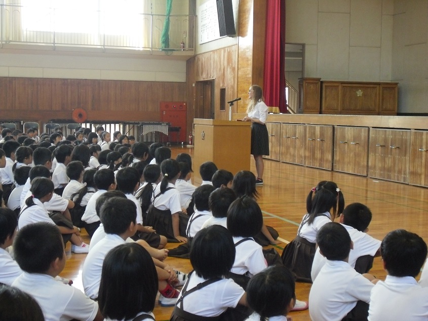 終業式終了後、2年間お世話になったALTの先生のご挨拶