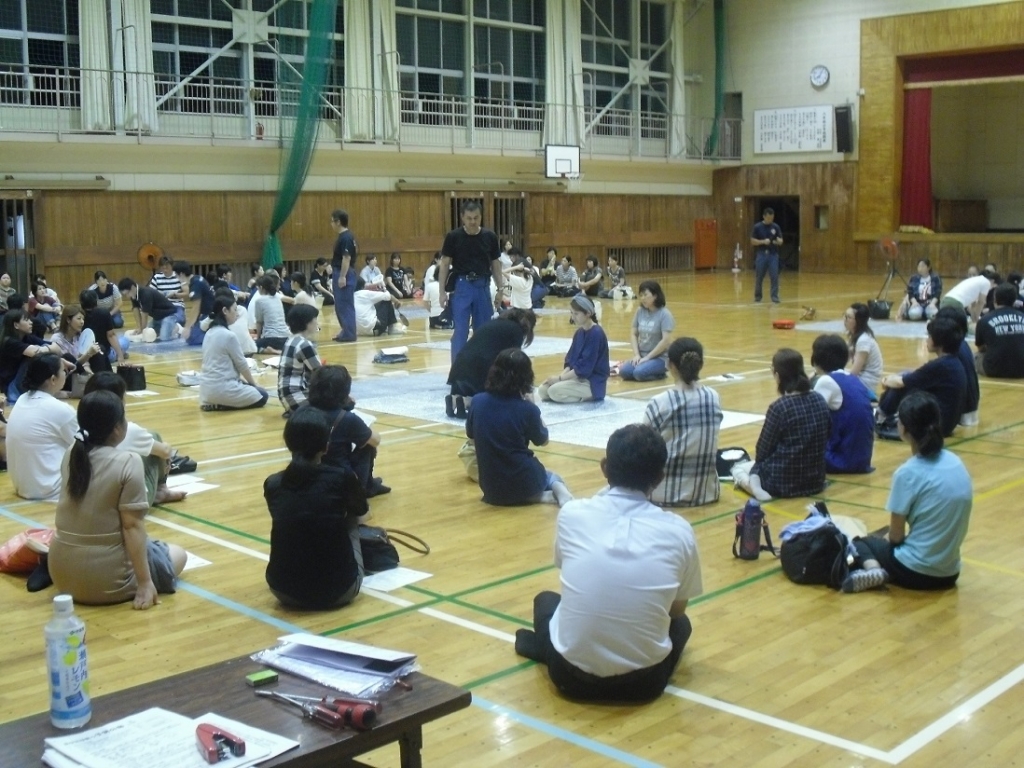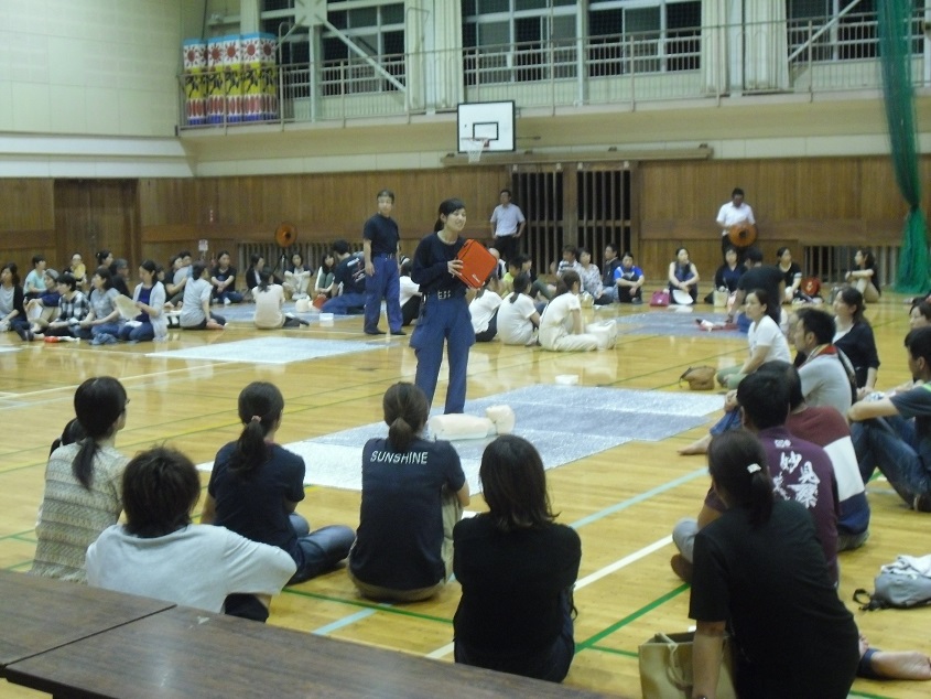 本部から講師を招いて心臓マッサージやAEDについての