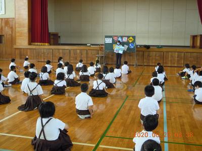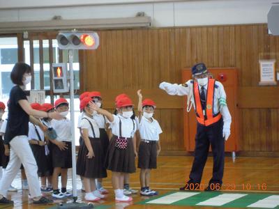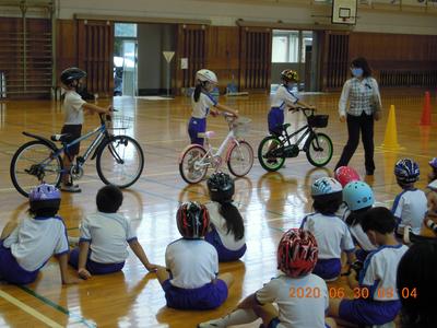 今週、1~3年生の児童を対象に体育館において交通安全教室を実施しました。