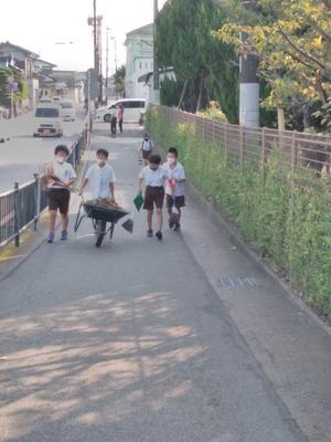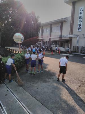 翌朝、多数の職員で清掃をしていると、6年生児童も駆け付けてくれました。