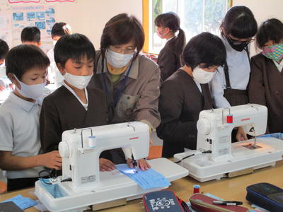 昨日の「焼き芋パティー(2年生)」に続き、連日のご協力に感謝します。(明日は5年3組が同じくミシン縫いでお世話になります。)