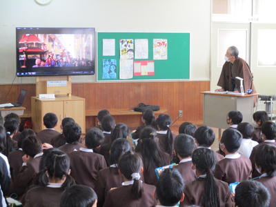 12月9日(水)、保存会の会長さんをゲストティーチャーとしてお招きし、お話をして頂きました。
