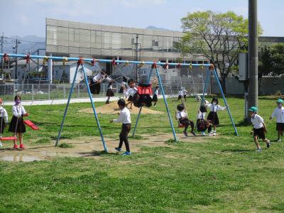 一気に春らしくなり、子どもたちは楽しそうに春の昼休みを満喫しています。