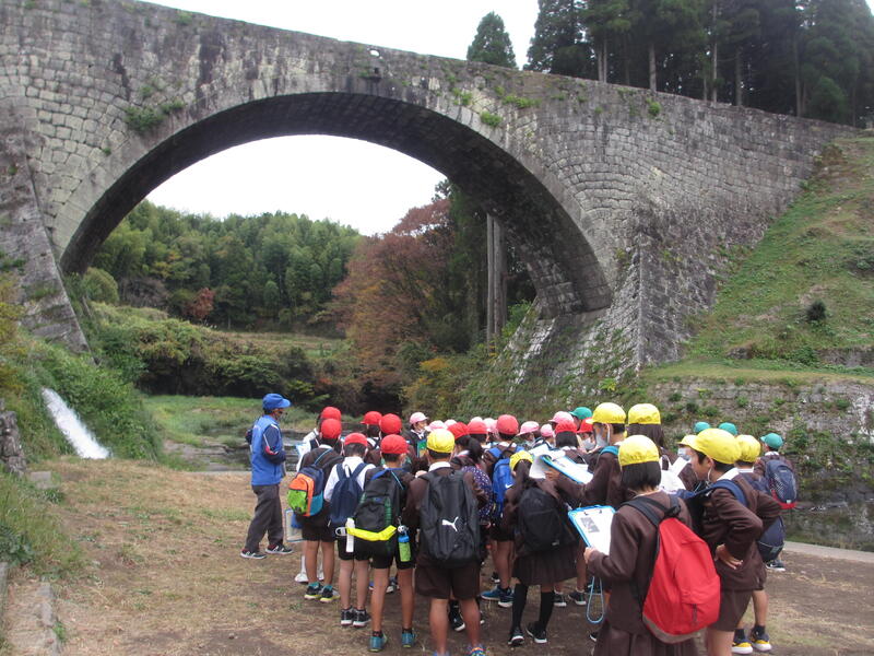 山都町では、円形分水や通潤橋を見学しました。現地ガイドの方に案内していただき、それぞれの場所でたくさんお話をしていただきました。
