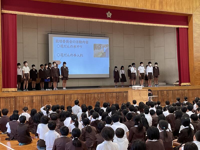 今回は、図書委員会、栽培委員会、人権委員会からの発表と校長先生のお話がありました。