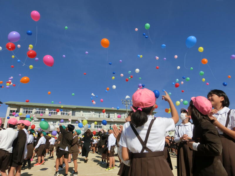 第3部では、運動場に出て風船飛ばし(環境に配慮した風船)を行いました。