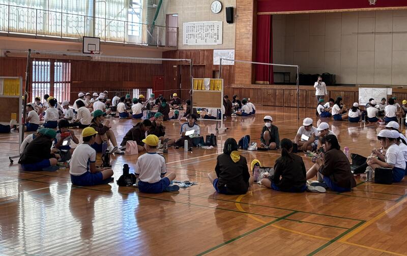両校で一緒にお弁当を食べた後、ソフトバレーボールのリーグ戦をして、交流を楽しみました。