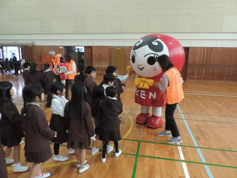 人権教室の後、子どもたちは「人KENあゆみちゃん」に見送られながら会場を出ました。