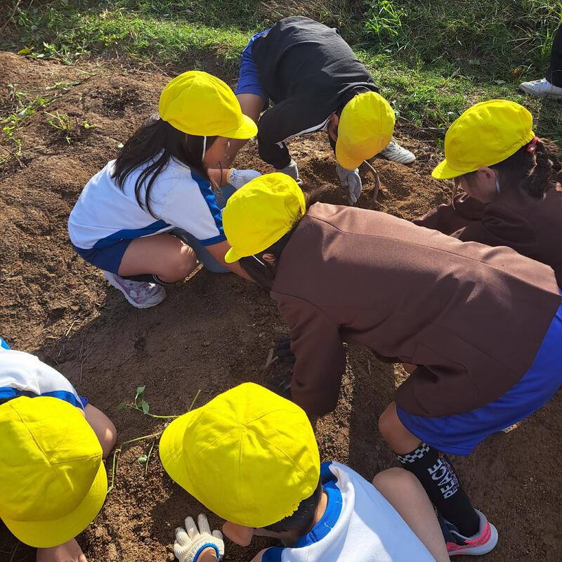 まず、18日(月)に2年生が地域の方と一緒に芋掘りをしました。