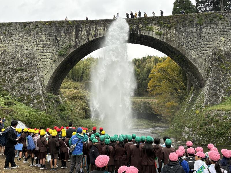 「通潤橋」では、ボランティアガイドさんに案内していただきながら、