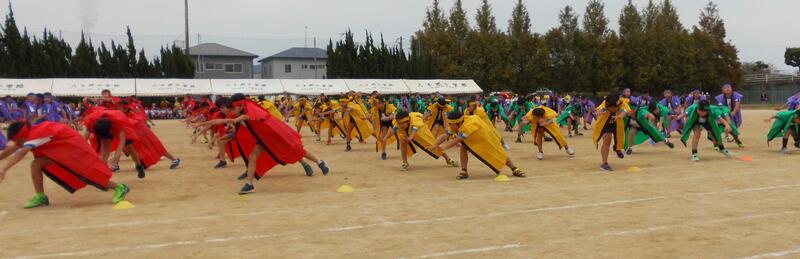今年度は久しぶりに団対抗形式の運動会でした。優勝した赤団、準優勝した青団、