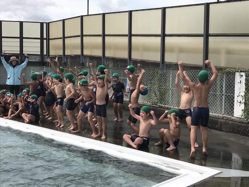 この水泳教室では、個に応じた指導ができました。指導する先生が多く、教師が一体となった「チーム八千把」として子どもたち一人一人の力を伸ばしました。今日の水泳教室で、初めて25m泳げるようになった子どもたちが何人もいて、指導した先生と喜びながらハイタッチしていました。水泳教室は、あと1日あります。25mと言わず、さらに泳げる距離をのばしてほしいです。