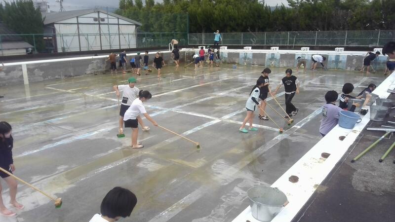 1・2組が小プールと更衣室等を、3・4組が大プールをきれいにしました。