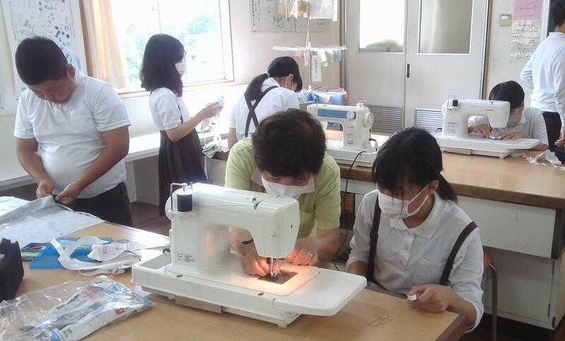 6年生が家庭科の学習でエプロンを製作しています。