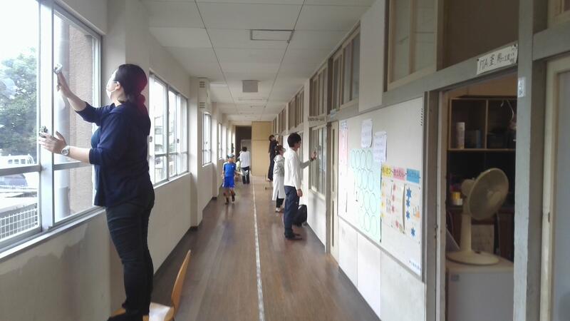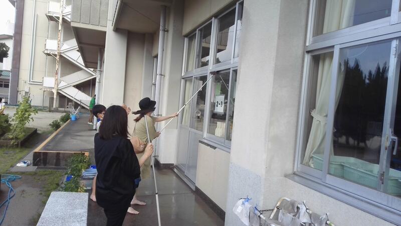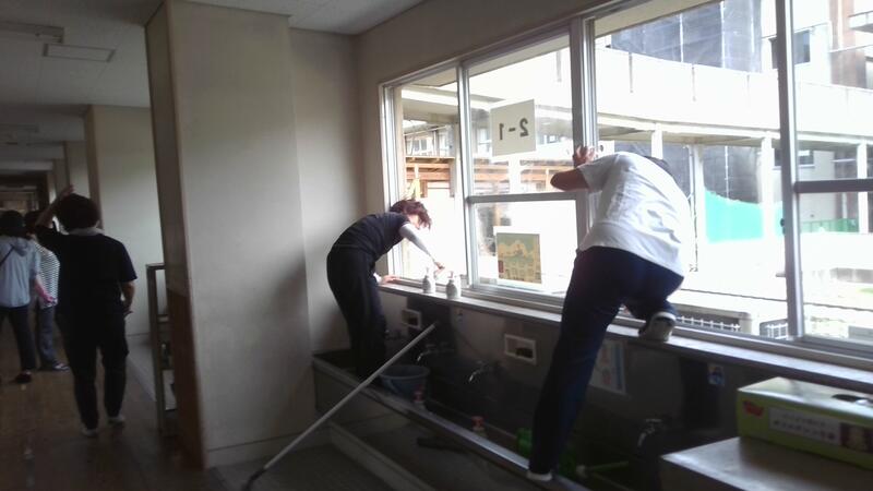 今回の作業では、教室の窓ふきやトイレの清掃などを中心に行いました。