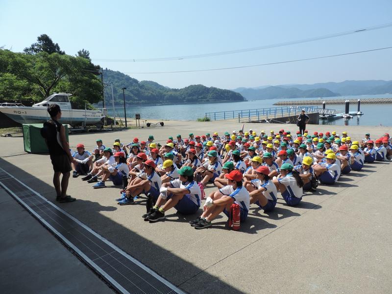 いよいよペーロン活動です。説明を真剣に聞く子どもたちです。